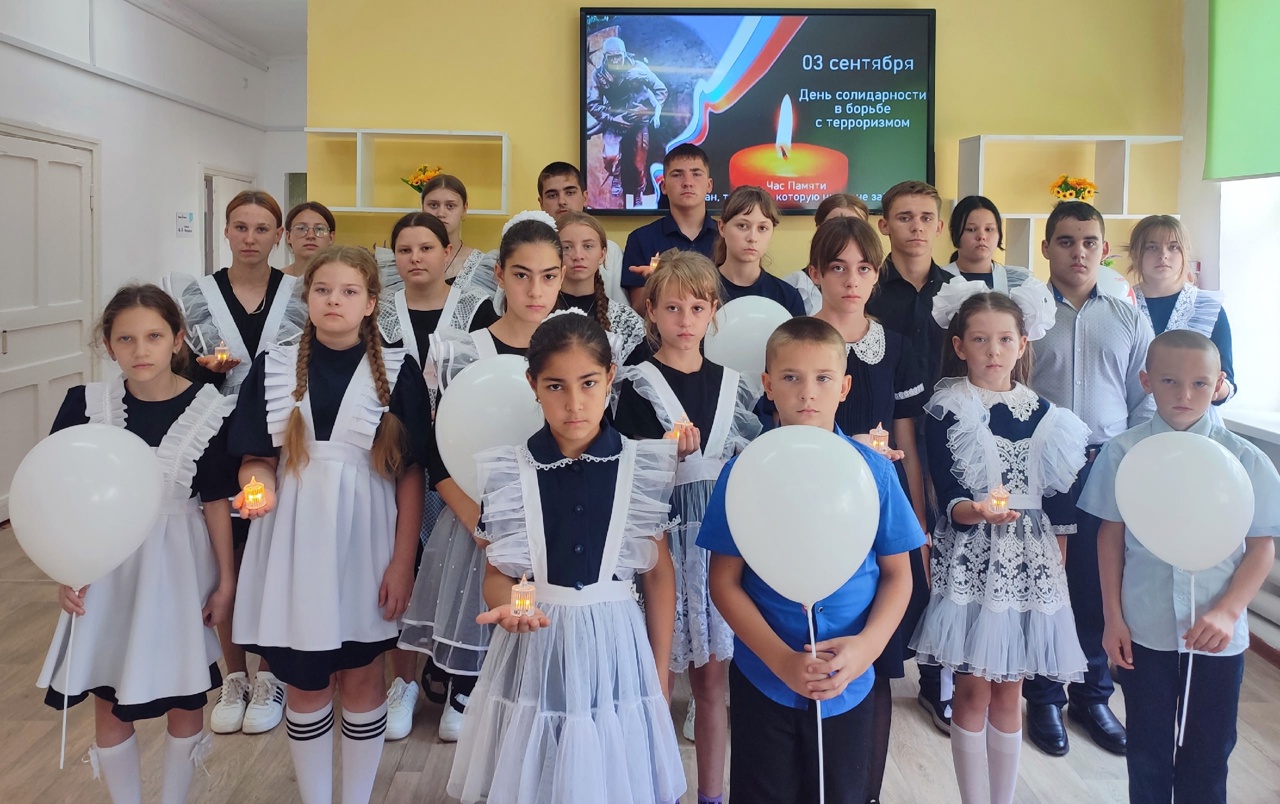 3 сентября в нашей школе прошел митинг "Детям - мир без тревог и слёз", посвящённый Дню солидарности борьбы с терроризмом. На митинге вспомнили о тех, кто стал жертвой террора, и выразили надежду на мирное будущее без насилия. Ребята посмотрели видео о трагических событиях в Беслане, узнали о мужестве спасателей и о страданиях тех, кто оказался в заложниках. В результате этой страшной трагедии погибло 334 человека, в том числе 186 детей. Присутствующие зажгли свечи и почтили минутой молчания жертв террористических актов, а также сотрудников правоохранительных органов, погибших при исполнении долга.