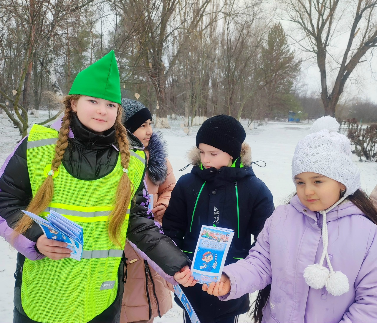 После беседы участники отряда "Светофор" раздали каждому ребенку красочные памятки с основными правилами безопасности зимой. В памятках были указаны телефоны экстренных служб, а также полезные советы о том, как избежать травм на гололеде и как правильно вести себя на горках и катках.